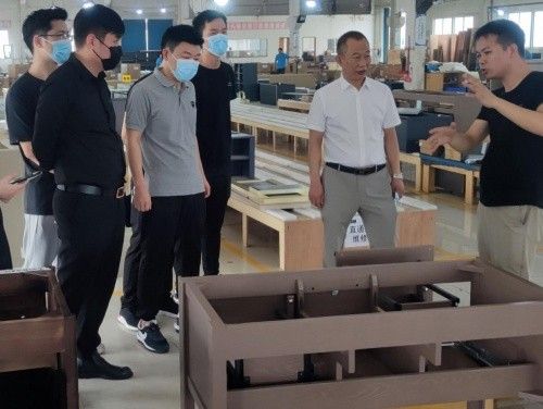 游學(xué)第一站,西安設(shè)計(jì)師團(tuán)隊(duì)一行首先參觀了LORBN勞賓?高明生產(chǎn)基地。高明生產(chǎn)基地是集“綠色、智能、精益”為一體的現(xiàn)代化智能工廠,擁有行業(yè)先進(jìn)的生產(chǎn)設(shè)備、綠色的自動(dòng)化生產(chǎn)線和嚴(yán)格的質(zhì)量檢測(cè)標(biāo)準(zhǔn)。設(shè)計(jì)團(tuán)隊(duì)在LORBN董事長(zhǎng)李睿等領(lǐng)導(dǎo)人員的帶領(lǐng)下,近距離感受了浴室柜的生產(chǎn)原理及工藝設(shè)備。