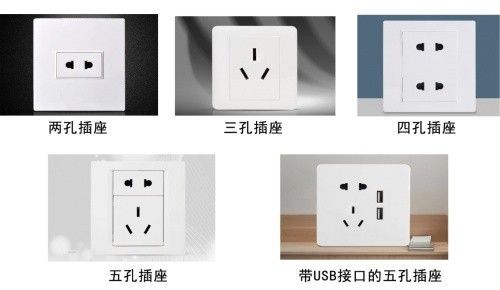 常見的有5種:兩孔插座、三孔插座、四孔插座、五孔插座、帶USB接口的五孔插座。