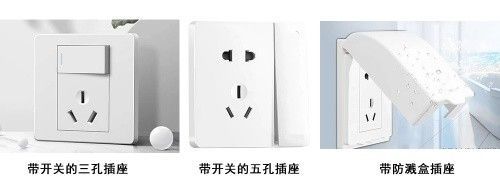 另外還有幾種根據(jù)實(shí)際生活使用生活場景設(shè)計(jì)的特殊性能電源插座:帶開關(guān)插座、帶防濺盒插座、多功能插座。