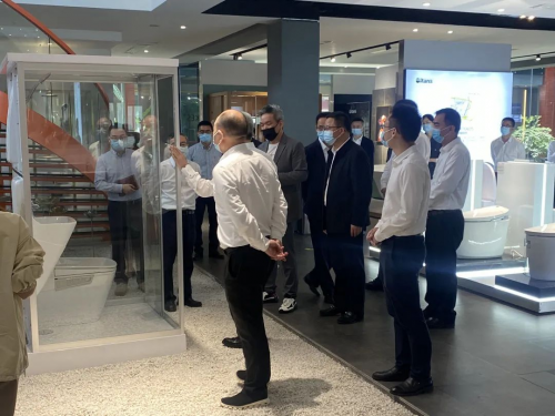 市委副書記、市長吳曉東等一行先后參觀歐路莎國際化展廳以及數字化智控中心,就歐路莎目前開展的數字化創新模式予以肯定,并鼓勵堅持創新精神,鞏固創新成果,持續推動企業數字化改革,發揮民營經濟的活躍力量,爭創一流,推動臺州經濟發展,帶動民生改善。