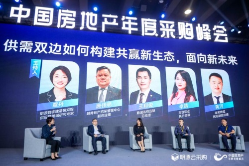 在圓桌論壇環(huán)節(jié),明源數(shù)字建造研究院供應(yīng)鏈領(lǐng)域研究專家 覃丹作為主持人,提出了“供需雙邊如何構(gòu)建共贏新生態(tài),面向新未來”的議題,越秀地產(chǎn)招采管理中心副總經(jīng)理 唐佳明、勤誠達(dá)供應(yīng)鏈總經(jīng)理 王和俊、泰昇線纜民用副總經(jīng)理 黃河、高登鋁業(yè)執(zhí)行總裁 李婧四位重量級嘉賓登臺論述,就供需合作模式、綠色供應(yīng)鏈打造、經(jīng)營成本優(yōu)化等實戰(zhàn)性話題,給出了極具啟發(fā)的深刻見解。