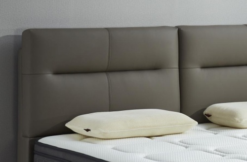 這款東寶軟床雖然外觀簡潔,細節處卻毫不含糊,床頭采用真皮包裹,觸感柔順,親和肌膚。床頭靠包猶如一塊“法式面包”,柔軟飽滿,倚靠舒適。