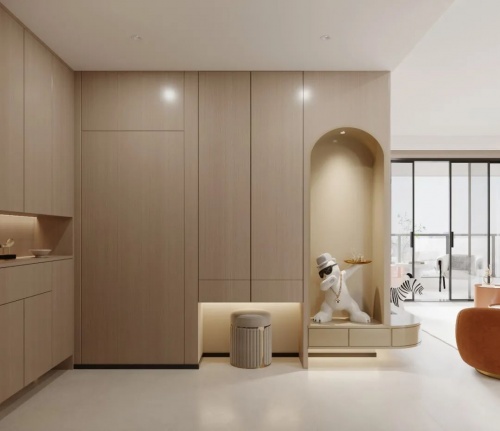 柔和的纖素意木和簡潔白色的墻面完美契合,處處流露出浪漫與時尚的氣息,纖素意木紋理悠遠,詮釋著自然的純粹和溫暖的回歸。