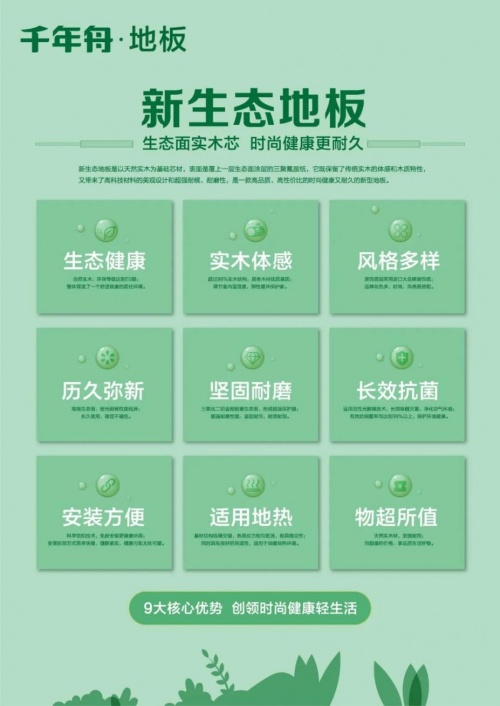早在2002年黨的十七大報告中就明確提出了實現全面建設小康社會奮斗目標的新要求,其中,“建設生態文明,基本形成節約能源資源和保護生態環境的產業結構、增長方式、消費模式”,更是重中之重。千年舟深耕板材產品研發23年,基于板材行業及90后新興消費市場的變化,根據23年的生態板材生產技術于經驗,2022年首次將生態技術應用于地板,“新生態地板”正式誕生:這是一款致力于打造兼具實木體感和生態技術特性的時尚健康又耐用的新品類地板,服務于新時代年輕人生態家居環境的生活需要,它又是怎樣當之無愧的呢?