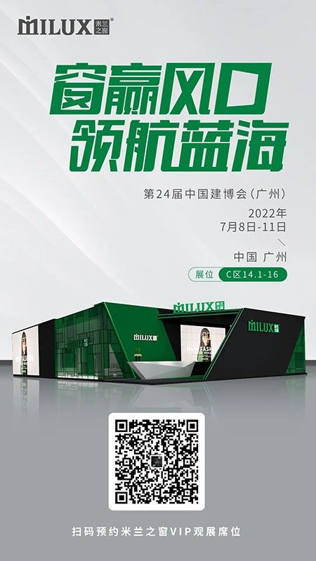 作為中國系統(tǒng)門窗行業(yè)的領(lǐng)軍品牌,米蘭之窗不斷引領(lǐng)中國門窗新風(fēng)尚,此次展會(huì)不僅是米蘭之窗對(duì)產(chǎn)品工藝創(chuàng)新展示,更是在獨(dú)具影響力的行業(yè)舞臺(tái)彰顯品牌綜合實(shí)力的亮劍之行。2022年品牌首秀即將拉開序幕,行業(yè)盛世紛呈,7月8日-11日,中國進(jìn)出口商品交易會(huì)展館(廣交會(huì)展館)C區(qū)14.1-16展位,米蘭之窗整裝待發(fā),勢必領(lǐng)潮中國建博會(huì),如約相”建“,聚享未來。