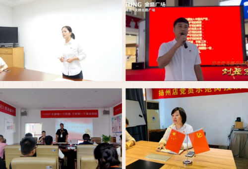 為迎接新的征程,在即將到來的這個特別的7月,樂居四店(南京金盛江東門國際家居廣場店、南京金盛橋北國際家居廣場店、南京金盛六合國際家居廣場店、揚州金盛國際家居廣場店)分別行動開展“七一”系列活動,帶領(lǐng)廣大黨員干部進(jìn)一步凝心聚力謀發(fā)展,不忘初心再向前,以優(yōu)異成績迎接黨的生日。
