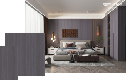 2022年最新花色—雁行意木,其深色肅雅,紋理爽直,深淺過渡勻而不亂,如雁陣成列而飛,使用藤編紋理融入現代技法,打造現代復古美學,營造素雅空間。