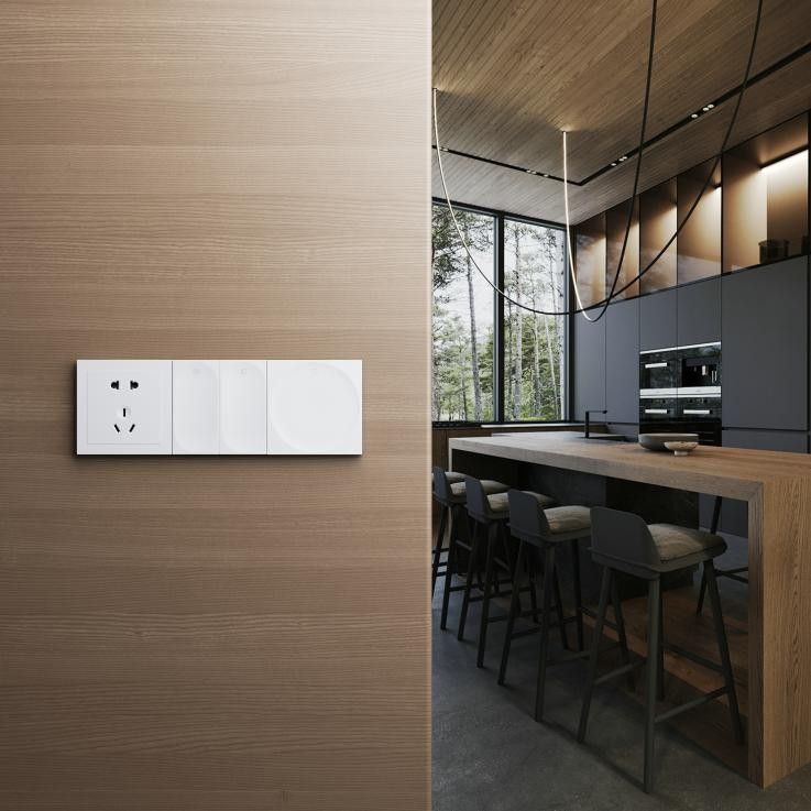 區別于市場同類產品,添智系列將超薄內圓凹陷的時尚外觀和多種技術突破相結合。外形設計采用天圓地方,大氣簡約,多種顏色可選,滿足個性化需求。全平面、無盲點輕觸按鍵開關,手感舒適。三峰照明添智系列將視覺與觸覺的完美交融,一屏在手,全屋隨心掌控。