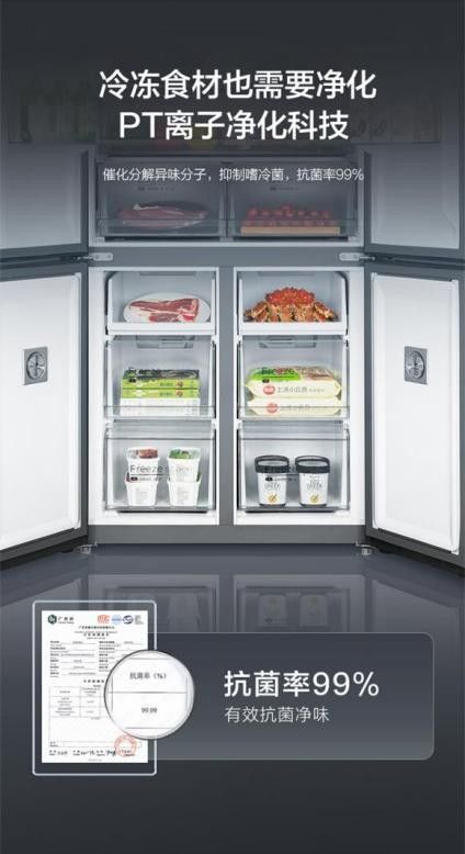 美的冰箱凈味系列,針對冰箱凈化的三個重要細節,進行了精細化的創新。吸風裝置上,搭載了新式渦輪電機,持續快速換新風,讓電解離子自由穿梭冰箱,凈化無死角;高活性金屬催化裝置,極大地提升了電解離子的產生速度和反應時間,帶來19分鐘急速凈味的高效率;同時也細節地在冷凍區設置了PT離子凈化模塊,催化分解異味分子,抑制嗜冷菌,抗菌率99%,讓冰箱實現全空間健康保鮮。