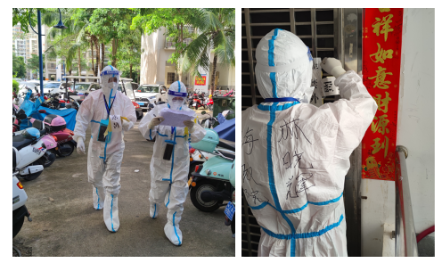 2022年8月25日,受臺(tái)風(fēng)“馬鞍”影響,三亞出現(xiàn)持續(xù)暴雨天氣。林曉輝一如既往的凌晨六點(diǎn)半穿好防護(hù)服,帶上核酸采集所需物品,準(zhǔn)備上門入戶完成每天一人一管核酸采集任務(wù),但是一直到7點(diǎn)半暴雨還沒有絲毫減弱的跡象,大雨可以等,但是疫情不能等,群眾不能等,林曉輝和搭檔找來雨衣爭(zhēng)分奪秒的冒雨去挨家挨戶做核酸采集,因?yàn)樗烂刻觳婚g斷的核酸采集是阻斷疫情發(fā)展最重要的環(huán)節(jié),他必須要堅(jiān)持下去,不然以前十多天的努力就有可能前功盡棄。林曉輝知道此時(shí)此刻的群眾有多么需要他們,他知道耽誤一天就會(huì)有很多漏洞和隱患,所以他不敢停下來,不管風(fēng)大、雨大,天氣多么惡劣都不能阻止他的腳步,在暴風(fēng)雨中,林曉輝是海南政法職業(yè)學(xué)院支援三亞抗疫的各個(gè)志愿服務(wù)小分隊(duì)里眾多志愿者的縮影,但就是成千上萬的像林曉輝這樣的政法隊(duì)伍中的一員組成了抗疫之堅(jiān)“墻”,讓群眾感覺到穩(wěn)定、安心。