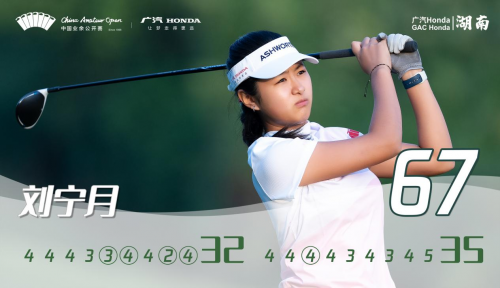 和男子組的激烈爭奪相比,女子組是另外一個故事,17歲的武漢姑娘劉寧月以其神勇表現,強力向個人高球生涯首個中國業余公開賽冠軍發起沖刺。