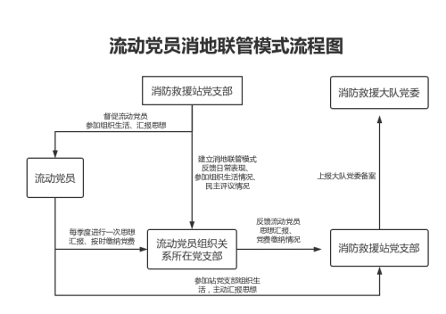 一是以聯(lián)管模式為“把控點(diǎn)”,促流動(dòng)黨員“收心”。建立流動(dòng)黨員消防地聯(lián)管模式,基層隊(duì)站黨支部主動(dòng)與流動(dòng)黨員組織關(guān)系所在黨支部建立聯(lián)系,隊(duì)站黨支部通報(bào)流動(dòng)黨員日常表現(xiàn)、參加組織生活和民主評(píng)議情況,流動(dòng)黨員組織關(guān)系所在黨支部反饋流動(dòng)黨員思想?yún)R報(bào)和交納黨費(fèi)情況,流動(dòng)黨員不僅要參加隊(duì)站黨支部組織的活動(dòng),還要定期向組織關(guān)系所在黨支部進(jìn)行思想?yún)R報(bào),每月交納黨費(fèi)。通過(guò)消地聯(lián)管模式,進(jìn)一步強(qiáng)化了流動(dòng)黨員組織觀念和組織意識(shí)。