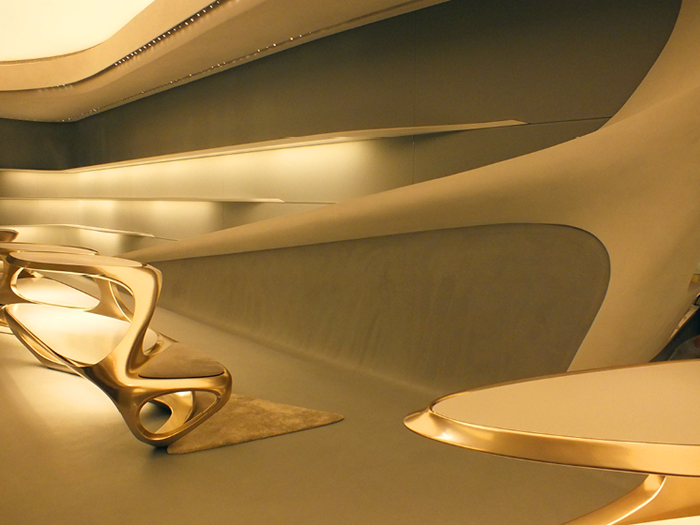 Stuart Weitzman 在米蘭和羅馬的創新零售概念由 Zaha Hadid 設計,使用 HD樹脂水泥的 PerfectCombination 和 CementoWabi 系列定制墻壁、地板、樓梯和家具。用于展示品牌系列的優雅而流暢的環境,幾何和材料融合在一起,不同的形狀遵循功能和人體工程學的原則。