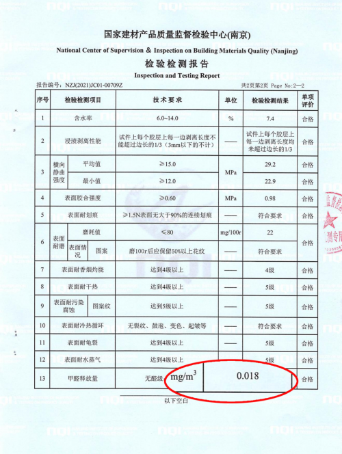 千年舟天然豆香生態板檢測報告