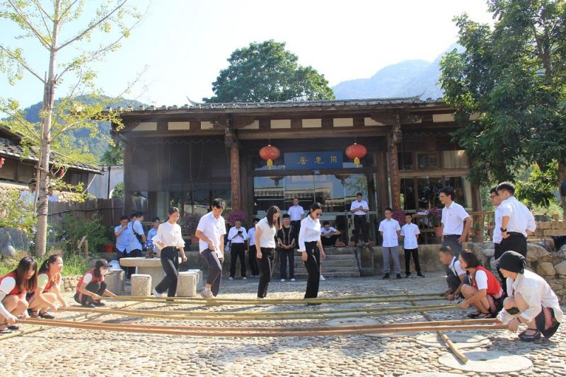 隨后黨員們一同前往羅源松山鎮竹里村。在松山鎮竹里村谷倉畫院,一行人參觀了畬風農民畫、扎染、特色陶藝等文創產品,體驗了具有畬族文化特色的扎染藝術及畬族特色舞蹈——竹竿舞,增加了對傳統手工織染文化的了解與認知,近距離感受畬族文化的獨特魅力和畬家的別樣風情。更加深切地感受到中華民族博大精深的歷史文化。