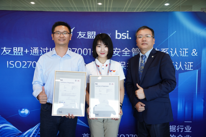9月23日,再認(rèn)證頒證儀式在京舉辦。BSI中國區(qū)標(biāo)準(zhǔn)應(yīng)用方案副總裁張樂先生代表BSI授證,并對友盟+順利通過該兩項權(quán)威的管理體系國際認(rèn)證表示熱烈祝賀。友盟+法務(wù)&合規(guī)負(fù)責(zé)人姚棟、法務(wù)合規(guī)專家賈紫薇代表友盟+接受證書。