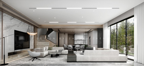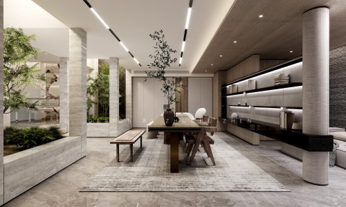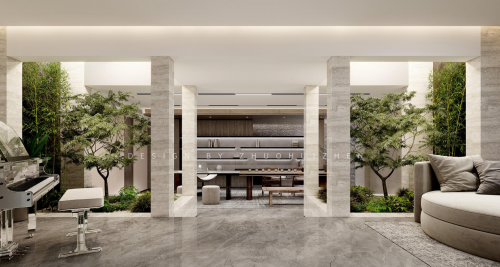 以綠翠為睛,棋相為底。于自然中,將白云院墅山水刻畫于室內建筑中,帶來奢華定制的空間享受,展現獨具藝術未來感的空間設計。