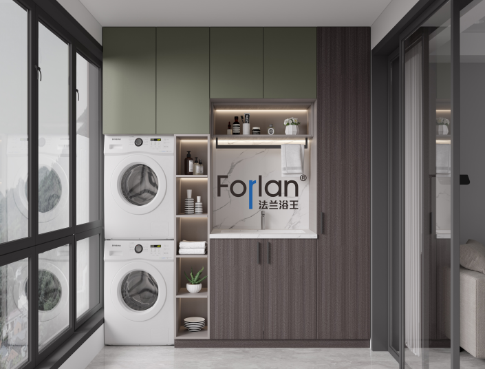 考慮到每個人的實際需求和審美品位不一樣,F(xiàn)orlan法蘭浴王高端陽臺柜可以根據(jù)裝修現(xiàn)場任意定制尺寸和款式,最大化利用陽臺空間。如底部放洗衣機(jī),上方做吊柜,可以增加很多收納空間,一些晾衣架、洗衣液、清潔工具都可以放進(jìn)去柜子里面。