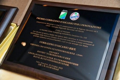 Guests from all walks of life participated in the event both online and on-site, including Mr. Marco Marsilio, Abruzzo Region President and resident of Cram, Ms. Tiziana D'Angelo, Consul General of Italy in Shanghai, and Mr. Fabrizio Ferri, President of the Association, Mr. Pierluigi Gorgoretti, Vice President of the Association, Mr. Claudio Neroni, Vice President of the Association; Mr. Avv. Carlo D'Andrea, Treasurer of the Association, and Jay Tao, the Head of Dongpeng International Marketing Department, as representative attended the ceremony to receive the award.