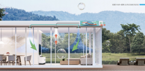 新風系統就是最好的選擇,它可以實現在不開窗的情況下,通過空調內置的新風系統進行及時通風換氣。在這方面,約克VRF搭載YAR+系列全熱交換系統,經過嚴格新風方案設計,由主機提供送排風動力,輸配管道延伸至各個房間。在新風引入后,經過全熱交換器中的高效凈化濾網,濾除新風中的PM2.5、灰塵、毛發等后,隨即送入室內鮮活空氣,滿足房間的新風需求,讓用戶暢享24小時新鮮的好空氣!