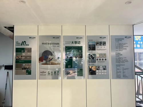 企業文化墻記錄了千年舟的發展歷程和企業優勢。