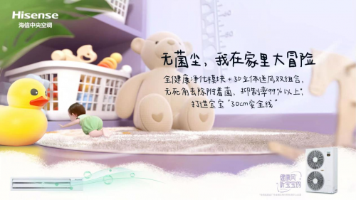 在將品牌實力不斷轉化成落地方案的過程中,海信中央空調始終圍繞人的需求而求新,讓中央空調真正成為有溫度、有情懷的“空氣家”。譬如,海信中央空調一直關注兒童的呼吸健康。針對地板上方 30cm 這一兒童活動空間容易聚集甲醛、病菌的問題,通過全健康凈化模塊配合無死角立體送風,保證室內空氣的全方位凈化,為寶寶打造健康安全線。