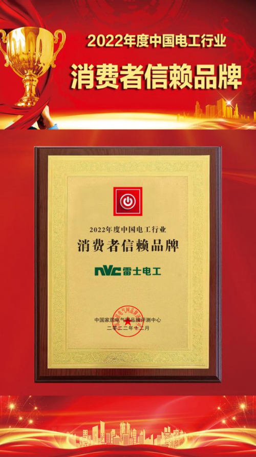 在嚴格的可靠性、安全性測試標準下,NVC雷士電工在2022年度中國家居電氣行業電工類品牌評選中榮獲2022年度中國電工行業“十大領軍品牌”“消費者信賴品牌”“十大創新品牌”稱號。