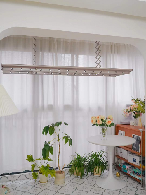 這款晾曬機主要特點有伸縮桿設計,靜音電機,6系鋁材,用料足,升降晾衣無噪音,伸縮桿設計,晾曬衣物收起時,可以節約更多空間。