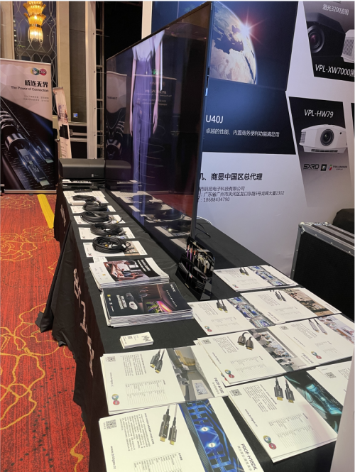 深圳美華是一家專業影音線材品牌,攜自有品牌bridgee橋界精彩亮相(為了品牌發展和便于大家記憶,之前“祈翱”更名為“橋界”),并和索尼SONY在共同打造專業影院系統,展示逼真絢麗的8K影院視效。