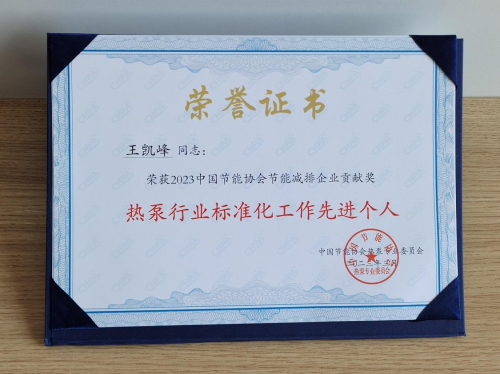 此外,在陽帆參與諸多的標準制定背后,副總經理王凱峰發揮了重要作用,他結合行業現狀和陽帆企業發展情況,實時性地提出不少建設性建議,本次也是獲評“熱泵行業標準化工作先進個人”榮譽稱號。兩項殊榮既是對陽帆在標準制定積極參與的肯定,也是對陽帆未來持續為規范行業發展做出更多貢獻的鞭策。陽帆也將不斷提高企業的質量效益和核心競爭力,以標準化助力空氣源熱泵發展,為助推“雙碳”戰略實施做出積極努力。