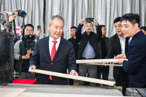 參觀過程中,世友地板綠色品質大使王石與世友地板總裁倪月忠在與會嘉賓、媒體的見證下,共同完成世友首批ENF級實木復合地板(多層)產品的上線生產工作。從E0(甲醛釋放量≤0.050mg/m3)到ENF(甲醛釋放量≤0.025mg/m3),這不僅是世友地板綠色品質的優化升級,更為地板行業整體的環保質量樹立了新標桿,為家居生活品質的提升實現了一個質的飛躍。