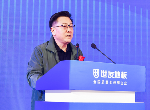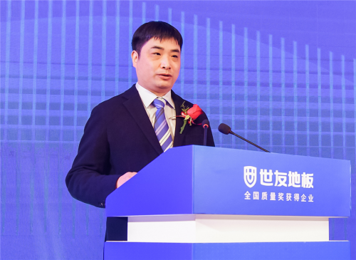 中國林產工業協會會長王滿先生發表講話,長期以來,他全面關注世友地板“健康”和“品質”的發展道路,高度贊揚世友關注人居健康、扛起“全健康大旗”社會責任感。相信在有關部門的大力支持下,在世友地板這樣的優勢領軍企業的引領下,木業行業一定能夠不斷突出重圍,走出一條綠色發展、高質量發展之路。