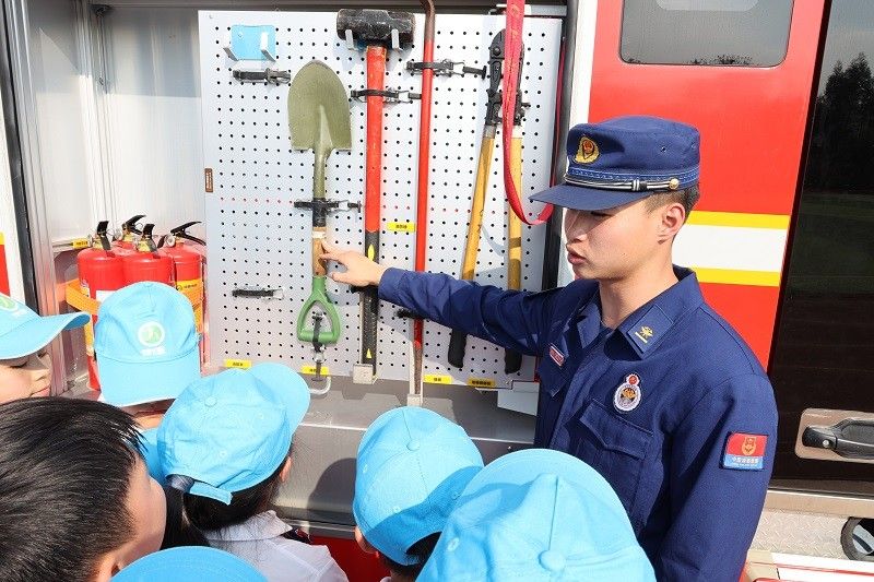 為了加深學生們對知識的掌握,讓同學們能更近距離地了解消防,消防員還將消防車開進了校園,宣傳人員還介紹了一些常用消防器材的使用方法,講解了各種滅火救援器材裝備的使用方法。在消防員的引導下,同學們參觀了消防車,消防員耐心地向?qū)W生介紹各種消防裝備、消防器材在搶險救援及滅火救援災中的使用,讓學生們可以近距離體驗各種消防設施,有利于全面增強師生消防安全素質(zhì)。