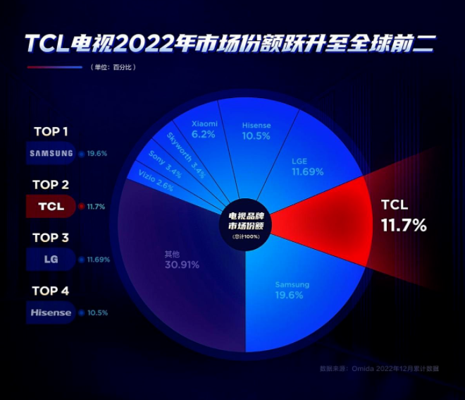 目前,TCL已建立起了健全而完善的電視產(chǎn)品矩陣,這也推動(dòng)了TCL電視銷量的穩(wěn)步提升。去年全年,TCL電視銷量市占率提升0.2個(gè)百分,達(dá)到至11.7%,超過韓國品牌LG排名躍升至世界第二,并連續(xù)四年達(dá)成電視銷量全國第一的優(yōu)異戰(zhàn)績,穩(wěn)坐行業(yè)頭把交椅。