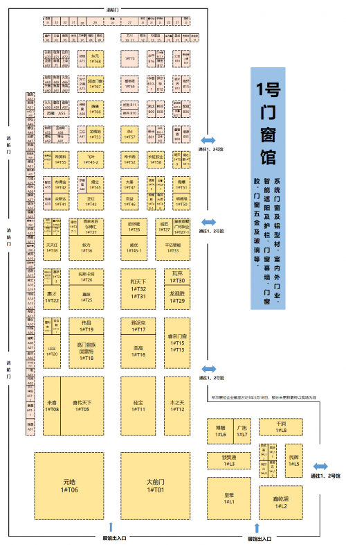 門窗展區(1/2/3/4號館+1-2連接館,近700余家參展企業)