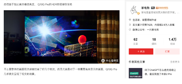綜合來看,TCL Q10G Pro確實在電視的畫質與軟硬件體驗方面有著相當突出的優勢,也怪不得像@家電狗這些行業權威大V都直言TCL Q10G Pro是2023年最值得買的Mini LED電視,這個稱號用在Q10G Pro上確實是實至名歸啊。