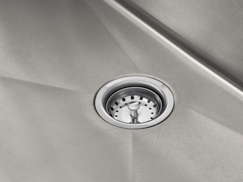 并且此款水槽采用新瀝水籃,瀝水孔的面積變小了但是數量增多了,更小但是更密,這樣能夠更好的過濾渣滓,落水快的同時不漏渣,同時拉環改為扣槽,取出更容易方便,平時洗菜刷碗不用擔心下水慢導致污水聚集在水槽中帶來不便,省心舒心。