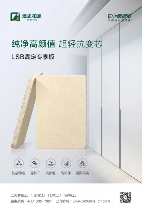在產(chǎn)品輕質(zhì)的同時,LSB高定專享板還有著優(yōu)秀的物理性能,輕型的材料加上對稱結(jié)構(gòu),使板材應(yīng)力釋放小,加上吸水厚度膨脹率低,確保板材變形量極低,可用于制作一體化大幅面家具、柜體、柜門、桌椅等多種類型的家具。
