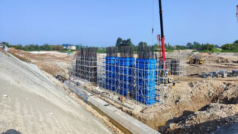中德(蒲江)物流港園區位于蒲江縣壽安新城西北部,總體規劃范圍面積18.9平方公里,包含西南特色水果冷鏈物流貿易港、中德(蒲江)中小企業產業園及川藏鐵路壽安綜合保障基地三大園區。此次澆筑的右幅1#橋墩墩柱屬標段內廣定東路大橋,橋梁長188.08m,寬40.0m,橋墩采用實體橋墩+承臺樁基礎,橋臺采用樁柱式橋臺、鉆孔灌注樁基礎,橋梁左右幅共8個墩柱。