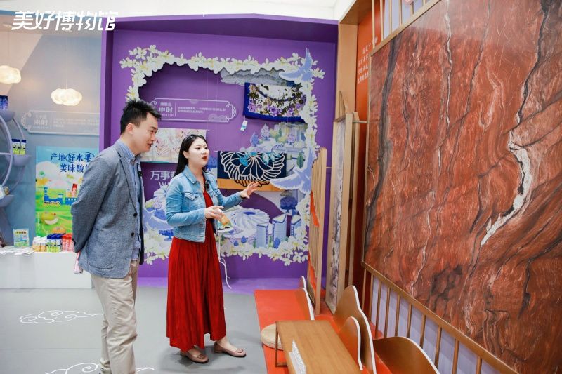 走進人民日報美好博物館的“美好生活”展區,以十二時辰為動線劃分,中國人一天的衣、食、住、行美好生活依次展開。在酉時日落時分,冠珠華珍巖板系列的落霞紅和琉璃紫,打造出日暮黃昏時分一家人團圓歡聚的美好生活場景:暮色四合、一抹落霞,為中國式美好人居寫一封熱情濃烈的情書,沉淀千年的東方美學,在時代的洪流中煥發新的光彩。