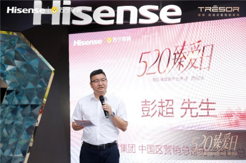 隨后,海信集團中國區營銷總部蘇寧BD總經理彭超先生發表演講,向現場來賓詳細介紹了璀璨的緣起和未來,本次攜5大東方雅致空間解決方案和智能化產品亮相南京,通過全場景的智慧體驗,用科技賦能東方雅致生活。隨后在雙方領導的共同見證下,海信璀璨家電藝術展正式開啟。