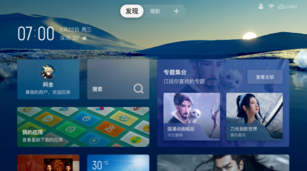 像是在軟件層面,TCL Q10H所搭載的靈控桌面就顛覆了此前傳統智能電視的瀑布流桌面,采用了全新類手機桌面設計,這樣我們就可以自定義組件的位置,方便我們可以快速找到自己常用的應用。