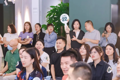 本次活動的亮點之一是,設計大咖與星河第三空間愛心商戶作為搭檔化身拍賣師,共同主持不同主題的畫作拍賣。臺上四組拍賣師組合風格各異,各有亮點。其中屬陳巖老師組合最為讓臺下觀眾印象深刻,他的主持風格幽默風趣,熱情洋溢。對每一幅作品的解讀,從專業的美學知識,到人生哲理,引發了在場觀眾對作品更深層次的思考。整個拍賣會持續了兩個多小時,現場生動而有趣,氣氛火熱,臺下的觀眾踴躍舉牌,50余幅作品一拍而空。