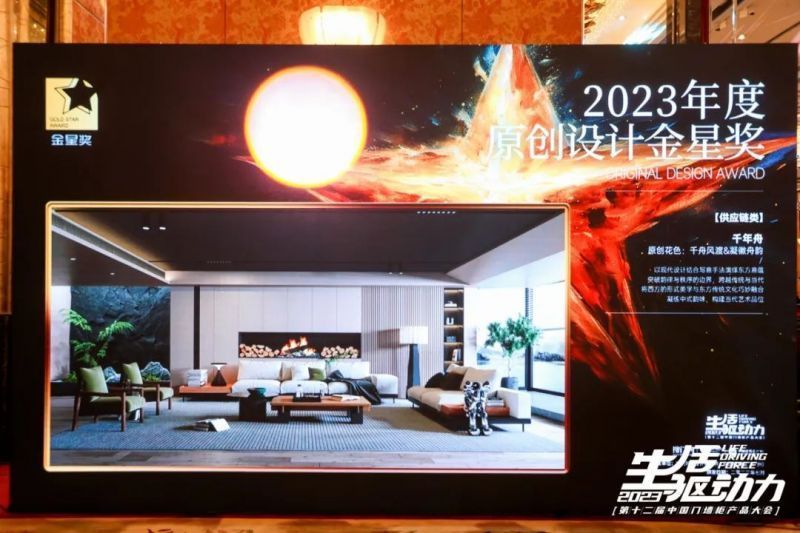 在晚上的頒獎典禮上,千年舟再次刷新品牌榮譽榜!憑借原創花色“千舟風渡”、“凝徽舟韻”榮膺“2023年度原創設計金星獎”!