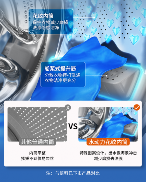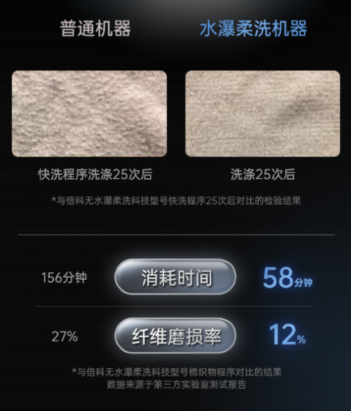 *與倍科無水瀑柔洗科技型號棉織物程序對比的結果,數據來源于第三方實驗室測試報告