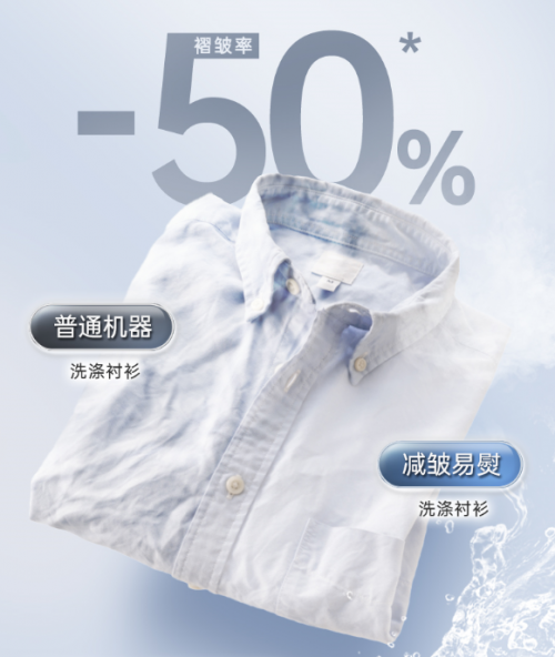 2、通過“蒸汽、抗皺洗、自動抗皺“三重立體防皺技術,讓衣物整潔如新