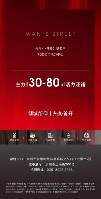 從項(xiàng)目拿地到華麗開放,再到如今的首開,崇州·(環(huán)投)望蜀里一直以來都是人們關(guān)注的焦點(diǎn)。此次的開盤熱銷,并不是偶然現(xiàn)象,這是市場和買鋪人對其作為“TOD都市活力中心”的核芯定位的高度認(rèn)可,更是對項(xiàng)目作為崇州商業(yè)封面的殷切期許。其區(qū)位優(yōu)勢、國企品牌實(shí)力、優(yōu)質(zhì)產(chǎn)品力、招商運(yùn)營能力及其區(qū)隔于其他項(xiàng)目獨(dú)有的“川藏自駕集散中芯”帶來的“自駕效益”優(yōu)勢明顯。