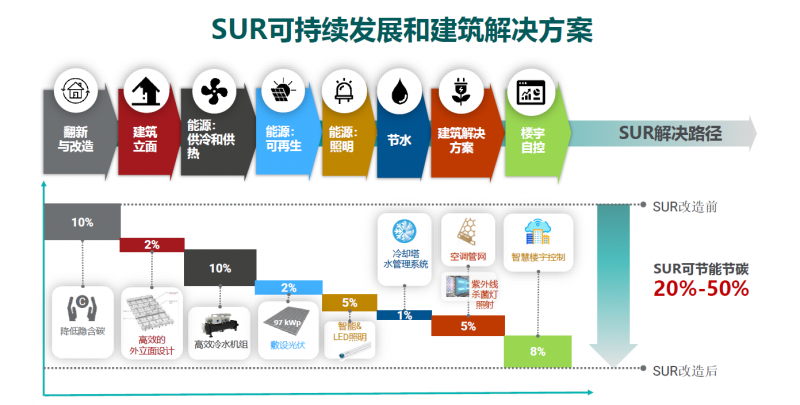 吉寶城市發(fā)展部中國可持續(xù)城市更新業(yè)務(wù)負(fù)責(zé)人黃蔚透露:“SUR最大的差異化優(yōu)勢在與我們不僅可以提供完整的低碳節(jié)能建筑解決方案,而且是可以完成改造實(shí)施和樓宇管理的運(yùn)營商,從而形成“以終為始”的有效閉環(huán)可持續(xù)城市更新的完整方案。目前,SUR團(tuán)隊(duì)已搭建起了一套完整的低碳運(yùn)營生態(tài)鏈,運(yùn)用國際前沿的智能技術(shù),結(jié)合運(yùn)營數(shù)據(jù)實(shí)施老舊商業(yè)建筑的城市更新,旨在實(shí)現(xiàn)資產(chǎn)收益的同時(shí),達(dá)到20-50%不等的節(jié)能率?!?/p>