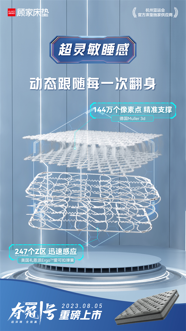 隨著杭州亞運會逐漸臨近,[運動]和[健康生活方式]]成為人們最津津樂道的話題。作為杭州亞運會官方床墊獨家供應(yīng)商的顧家,揭示了另一個容易被忽略,卻更為重要的健康問題——“睡眠”。現(xiàn)代人評判“睡得好”的標(biāo)準(zhǔn)不再只是睡得久不久,而是“深睡”質(zhì)量高不高。“深睡期”的時間長短和質(zhì)量,是作為睡眠質(zhì)量的重要指標(biāo)。晚上睡得好,白天才更有精力和底氣迎接挑戰(zhàn),因此,一場關(guān)于睡眠的競賽,其實已經(jīng)悄然拉開帷幕… ...
