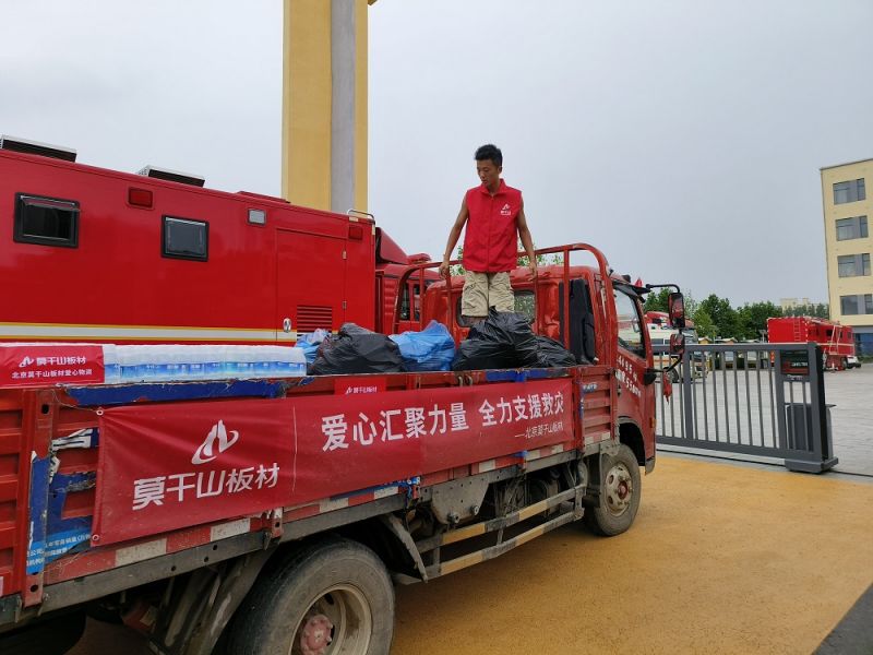 7月29日起,京津冀連續遭遇強降雨,北京門頭溝、房山及河北涿州等地受災嚴重。8月4日莫干山板材北京區域經銷商代表攜團隊第一時間加持災后重建工作,8月14日莫干山板材總部籌備的愛心物資亦到達抗洪一線。